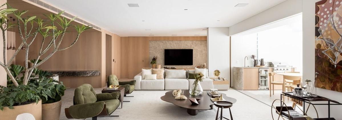 Em Curitiba, onde o clima mais ameno convida a permanecer em casa, o aconchego se torna ainda mais importante. Texturas, madeira, iluminação quente e uma boa distribuição do mobiliário fazem toda a diferença na experiência do espaço.